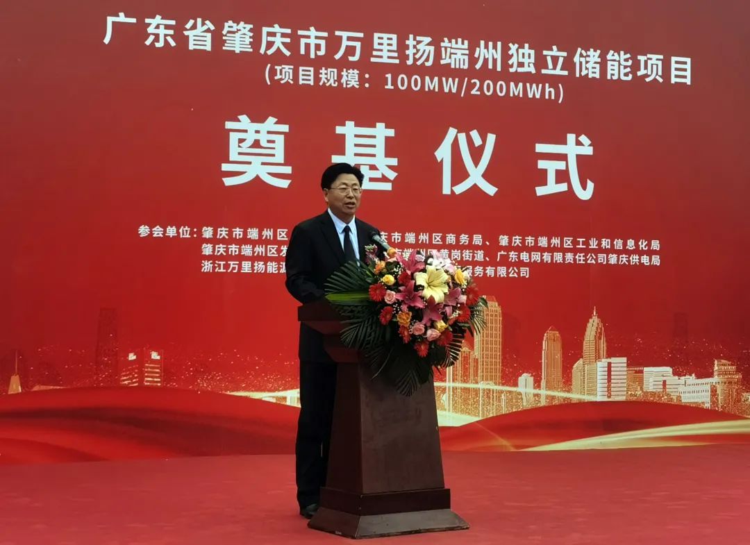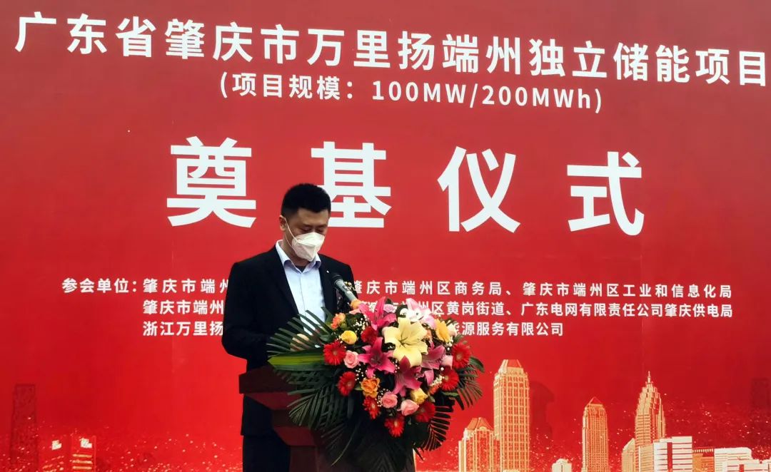 2023年1月13日,万里扬(002434)端州独立储能项目开工奠基仪式在广东省肇庆市举行。肇庆市端州区副区长彭卫鸿、浙江万里扬能源科技有限公司总经理吴云亮出席奠基仪式并致辞。